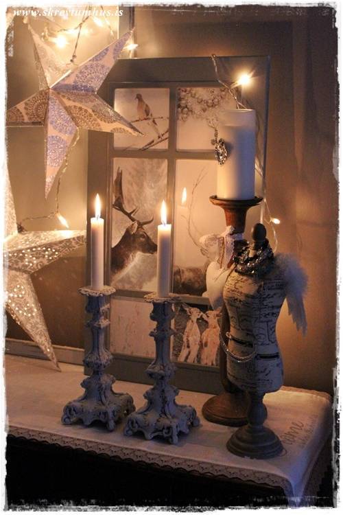 …stjakarnir eru búnir að færast staðanna á milli síðan þá – og ég þarf að sýna ykkur eldhúsgluggann, sem ég var að klára að skreyta, sem og eldhúsborðið!