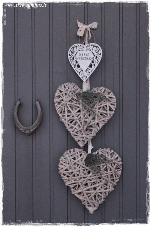 …neibbs, tók þessi þrjú hjörtu sem ég fékk í Rúmfó, og hvert þeirra kostaði um 400kr, og hengdi upp með blúnduborðum…