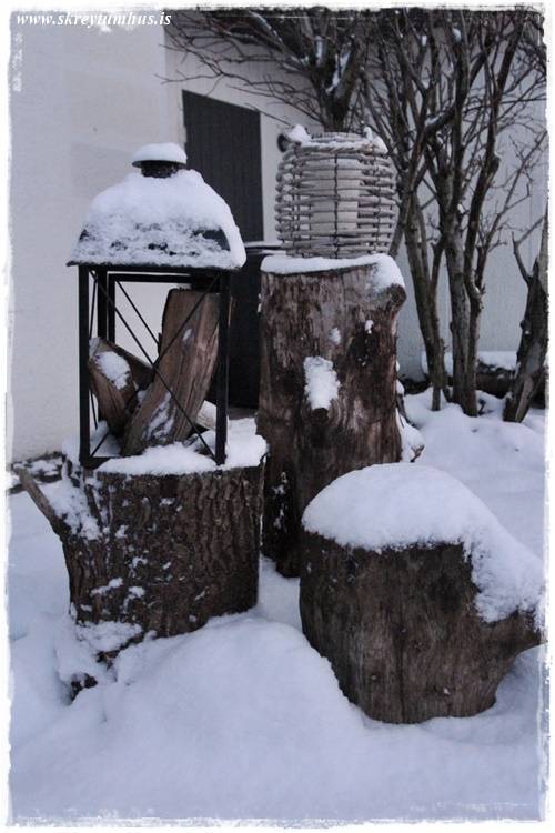 Þið sjáið líka að toppurinn hér fyrir ofan, hann er settur ofan í trjádrumb, sem heillaði mig enn meira 🙂