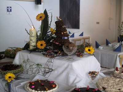 …ég var með lítið tré “grindverk” sem ég teygði yfir matarborðið, og þið komið til með að sjá að sömu hlutirnir eru nýttir í gegnum fermingarnar aftur og aftur…