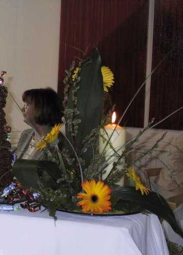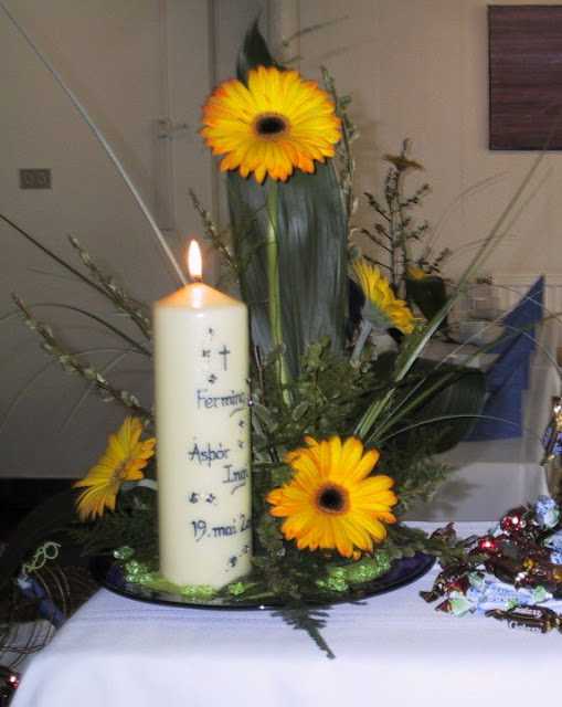 …Skreytingin var byggð upp með sömu blómunum og í kringum kertið…