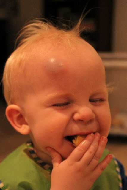 ..og að kveldi komin með RISAkúlu eftir misheppnaða flugferð niður af sófaarminum…