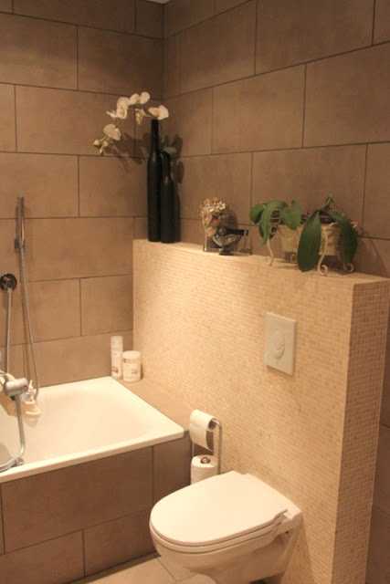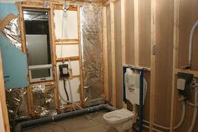 ..við fengum okkur upphengt klósett og ákváðum að byggja klósettkassann alveg yfir að útvegginum…