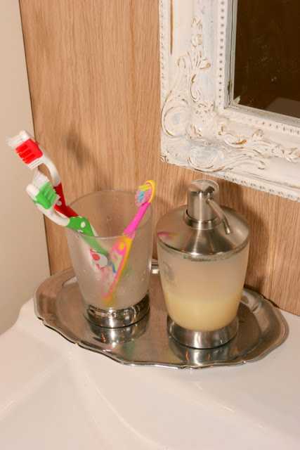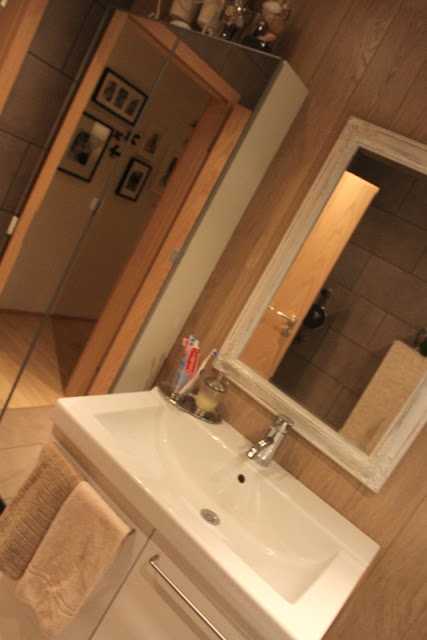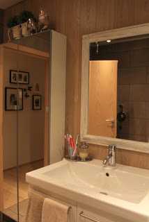 …innréttingarnar eru frá Ikea en spegillinn er Góða Hirðis-fundur, en ég hef verið heppin með að finna spegla þar, þessi var fyrstur og svo var það þessi hvíti og þessi “franski”
