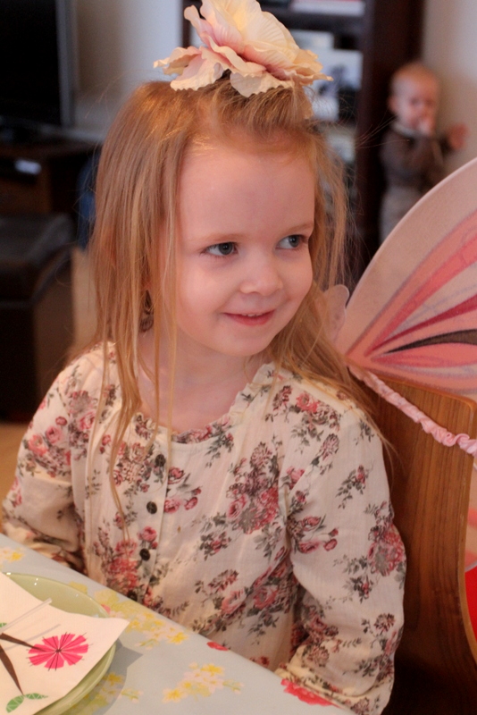…fallegu vængirnir sem eru á stólnum á endanum komu upp úr afmælispakka deginum áður,