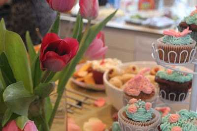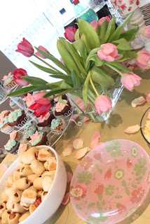 …eyjan dekkuð upp með veitingum fyrir stóra fólkið, blómadiskarnir stóðu reyndar ekki lengi tómir, en mig langaði bara að mynda þá þannig að fallega mynstrið á þeim næði að njóta sín, þeir eru reyndar frá Ikea…
