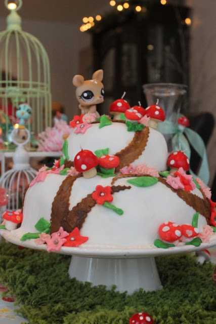 …en þetta var sem sé afmælisborðið í fjölskylduafmælinu og hér er kakan með öllum sætu sveppakertunum…