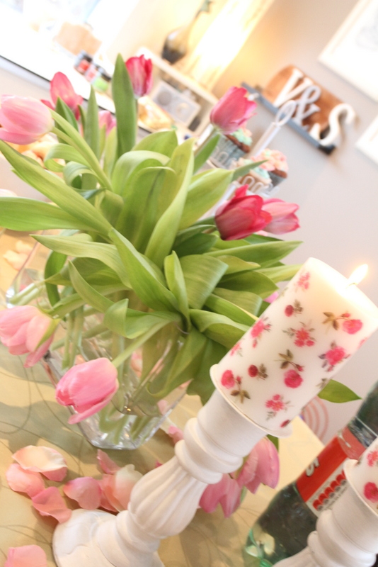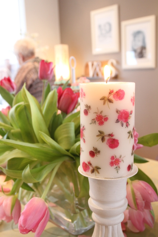 takið eftir rómantísku kertunum með bleiku blómunum, líka frá – jú Skál í boðinu! – Ikea 🙂