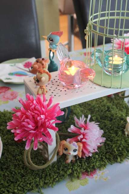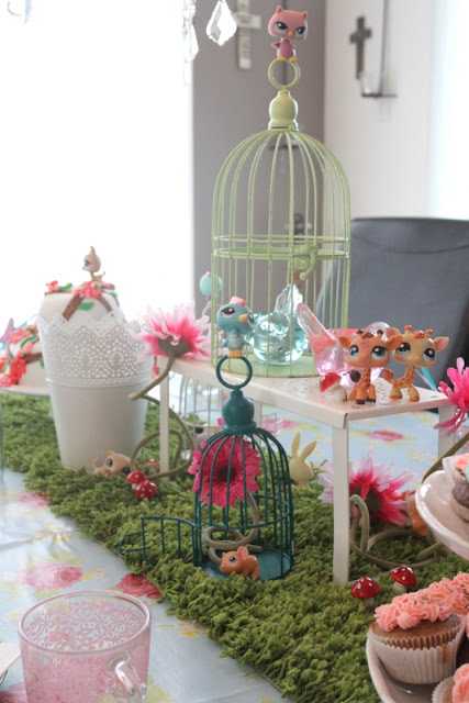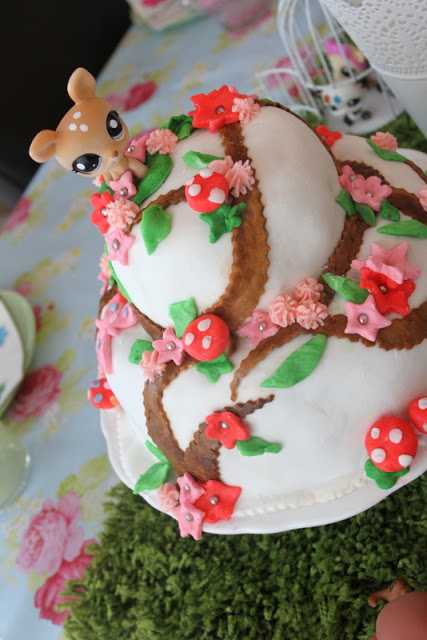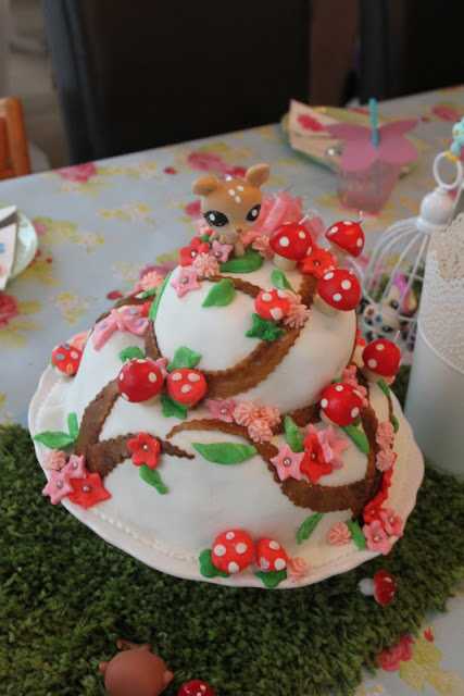 Elska þetta allt. Kakan er geggjuð. Sveppakertin æði. Blómin og sveppirnir og grasið með dýrunumm. Petshop-þemað verður svoooo sætt í þessum skógarstíl. Snillingur einsog alltaf.