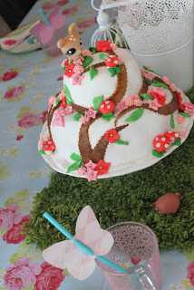 …það voru sem sé sveppir á kökunni (búnir til úr Fondant) og litlir sveppir sem “uxu” upp úr grasinu…