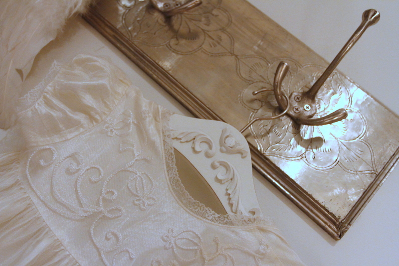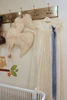 …reyndar verð ég að viðurkenna að skírnarkjóllinn (líka ættargripur sem öll þessi börn hafa verið skírð í) hangir ekki venjulega þarna lengur, þar sem að litli gaurinn myndi bara leika sér að því að hanga í honum 🙂