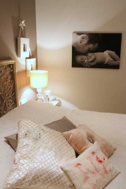 Ég er samt enn í miklum pælingum í að breyta í herberginu, langar jafnvel að veggfóðra einn vegginn við höfðagaflinn. Síðan sé ég fyrir mér svoldið spennandi á vegginn þar sem að stóra myndin er.