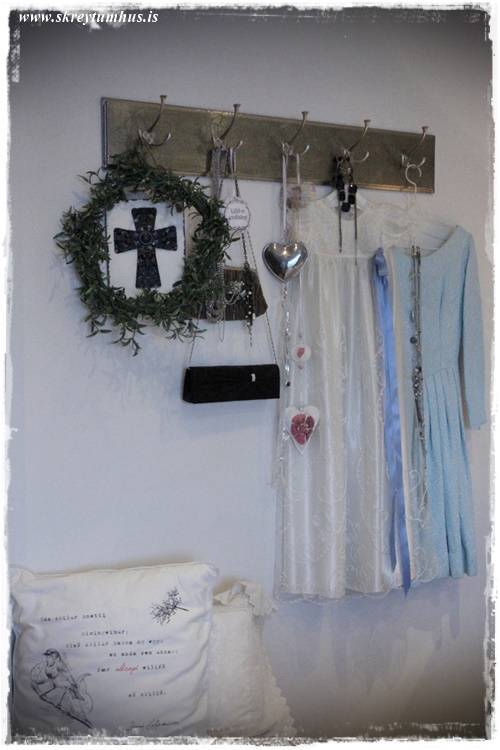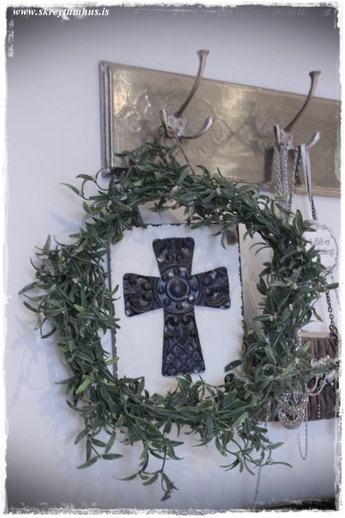 …lítill hjemmelavet krans, útbúinn á herðatré (sjá hér)…