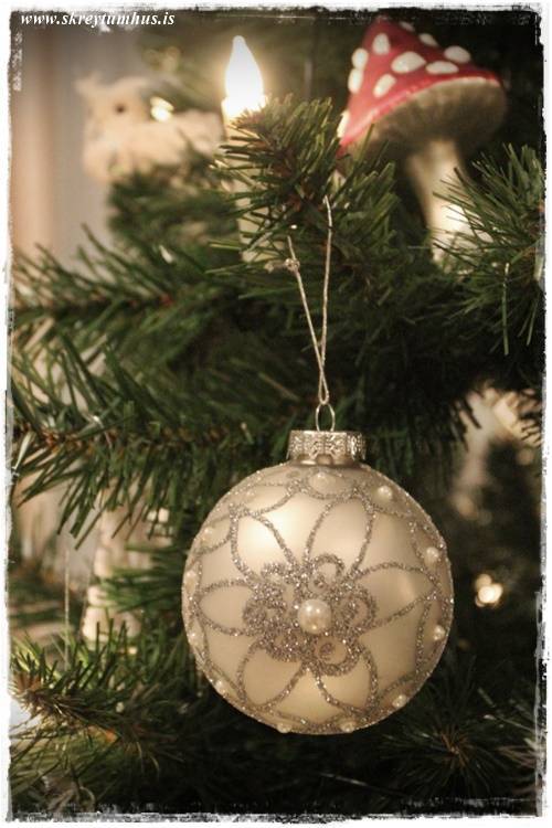 …og alls konar í bland, t.d. er þessi gamla bláa kúla af jólatrénu síðan ég var pínupeð – og ég held að hún komi frá ömmu minni…
