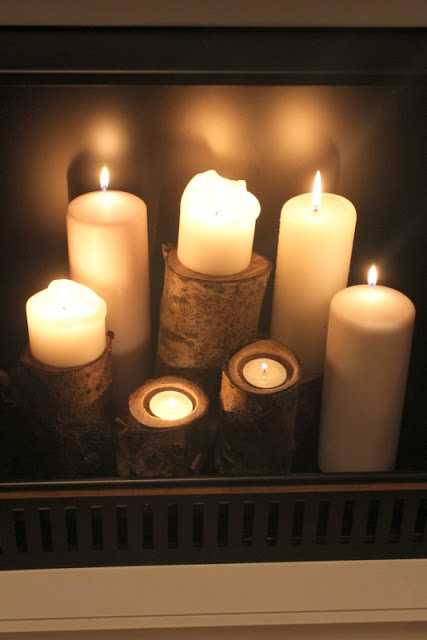 Svo flott !! Er með svona arin og hef verið með kerti í honum en lurkarnir gera ótrúlega skemmtilegan svip….ég ætla að herma 😉