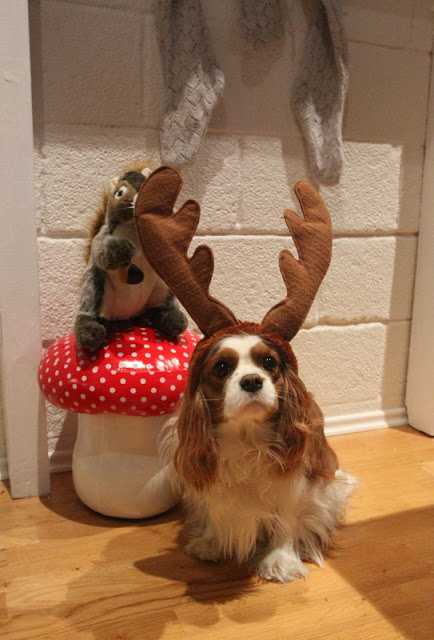 …en þó að húsfreyjan sé líka saumasnillingur, þá eru hornin ekki saumuð á sæta hundinn 🙂