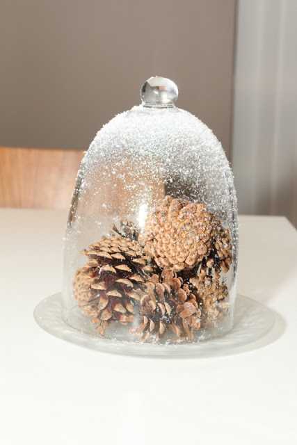 Takið eftir glerlokinu sem er fyllt með könglum…