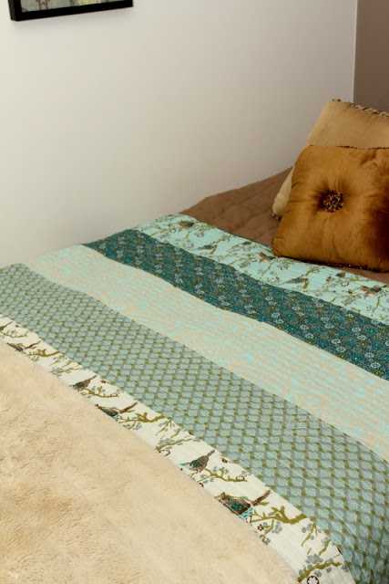 …teppið var ekki til í réttri stærð fyrir rúmið en ég lét það ekki stöðva mig og ákvað nota það bara þversum yfir rúmið, ásamt gamla teppinu, og líkar það bara ágætlega..