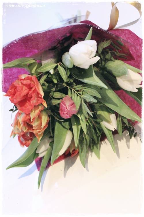 …ég réttlætti þetta að sjálfsögðu með því að bóndadagurinn er í dag, en með sanni get ég víst sagt ykkur að eiginmaðurinn er ekki mikill blómakall og það er næsta víst að þetta gleður mig mera en hann, en hins vegar er annað okkar þá kátt 🙂