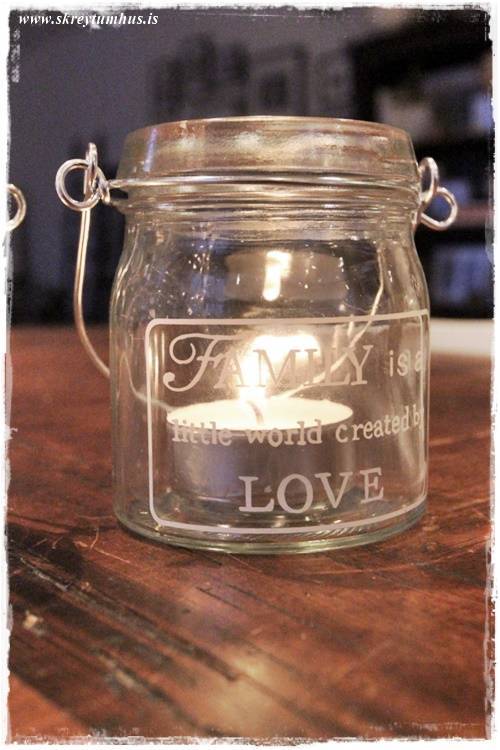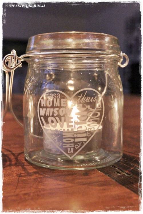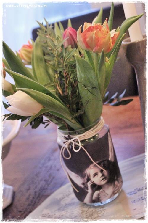 …krukkuvasinn er gamalt DIY-verkefni, en þetta er stór salsakrukka með mynd prentaðri af netinu, og sett á með ModPodge…