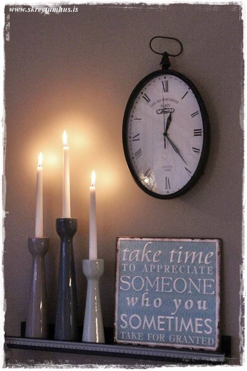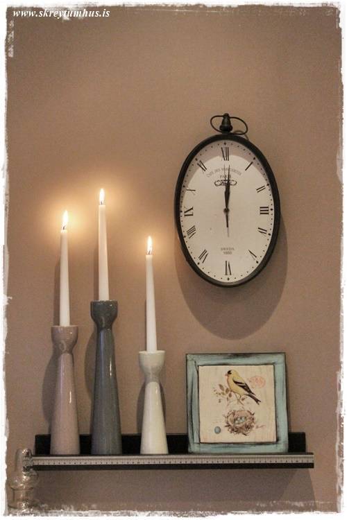 …dásemdarklukkan fékk að koma með heim og stjakarnir færðu sig um set…