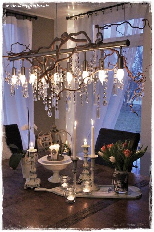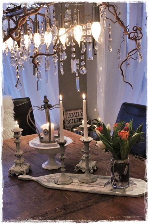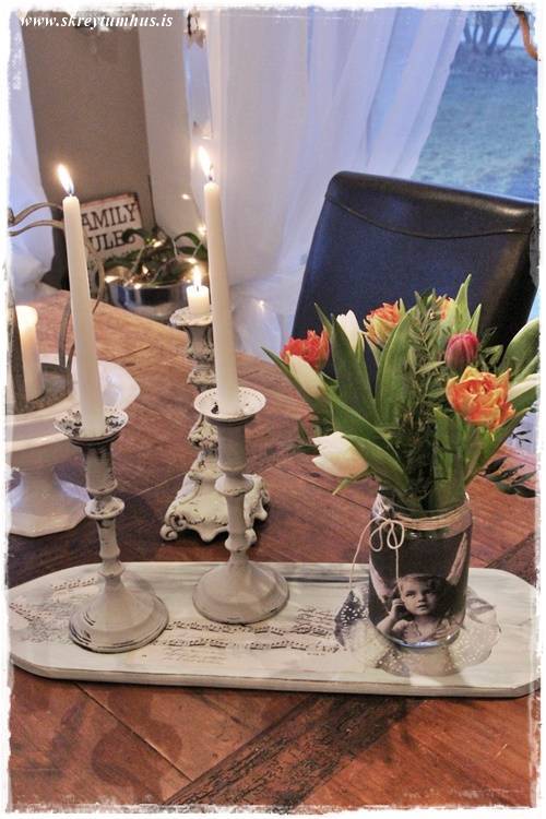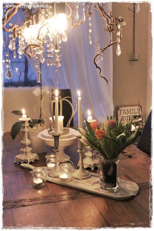 …en blómin fengu að vera áfram á eldhúsborðinu, ásamt kertum auðvitað…