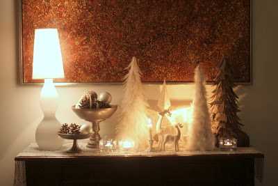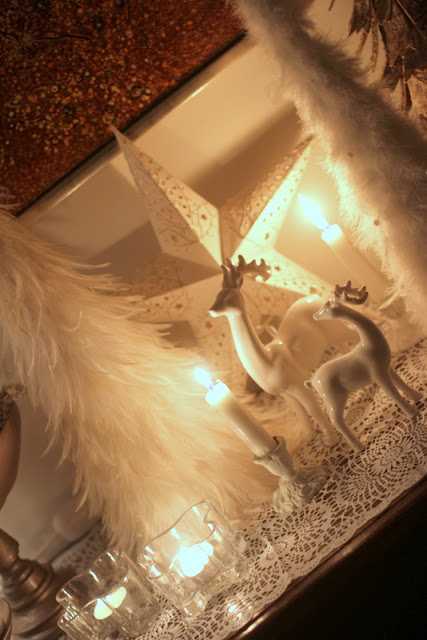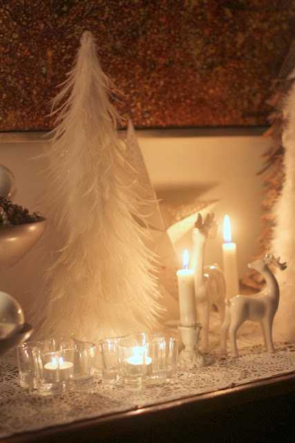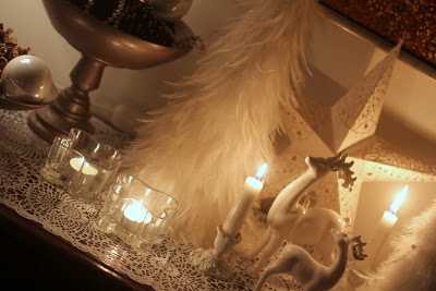 …stóru fjaðratrén eru úr Rúmfó (fyrir löngu síðan), stjarnan er frá Pottery Barn, hreindýrin eru frá Rúmfó…