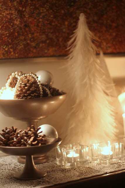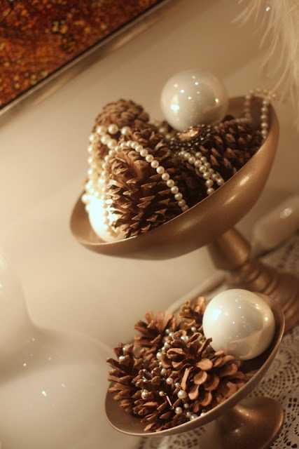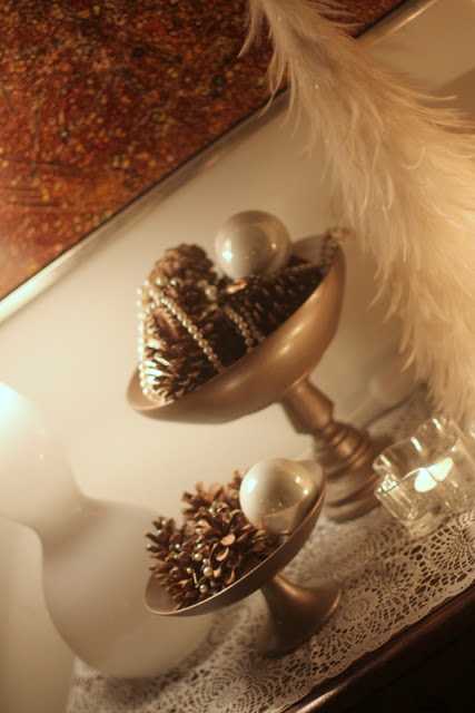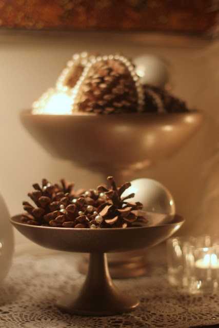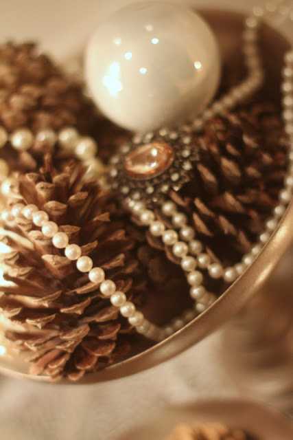…og perlufestunum mínum, sem voru lagðar yfir könglana