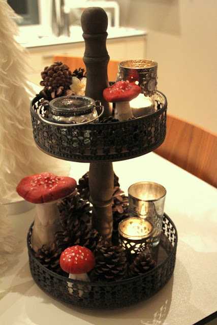 Glæsilegt hjá þér. Finnst svooo skemmtilegt að koma í “heimsókn” á síðuna þína og fá fallegar og skemmtilegar hugmyndir 😉 en viltu deila því hvar þú keyptir þessi fallegu hvítu tré og skemmtilegu sveppina?