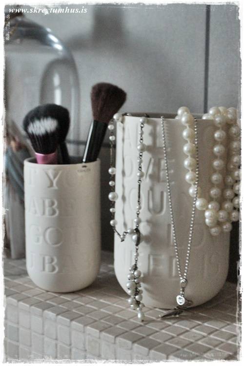 …í augnablikinu eru það fallegu Love Song vasarnir frá Kahler, sem geyma gullin mín, og auka förðunarbursta, sem ekki eru í noktun…