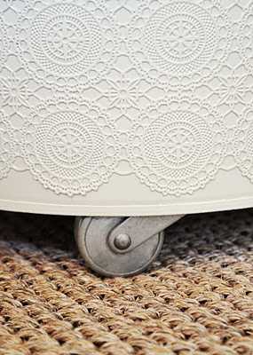 Tunna/málningardolla, plastdúkur, hjól og spreybrúsi sem verða að….