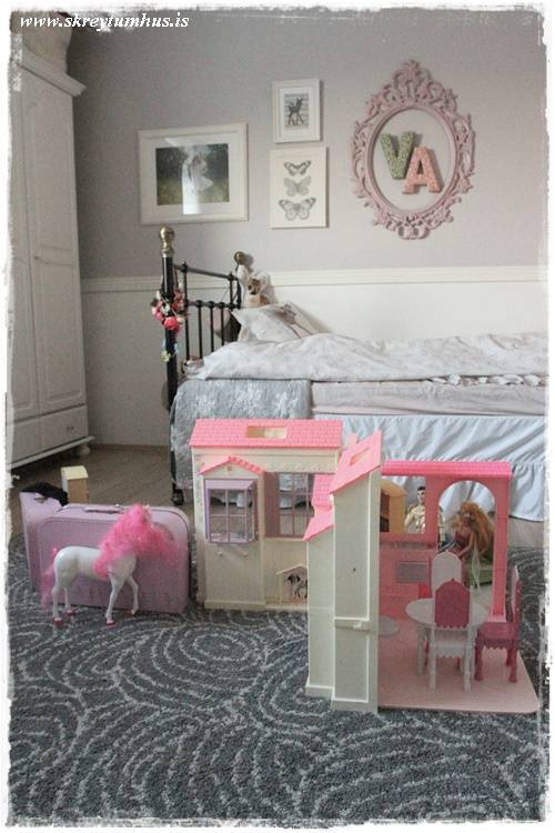 …og ég hef alltaf gaman að sjá hvernig hún dóttir mín stillir upp.  Sjáið bara rúmið, sem er umbúið og púðar til skrauts á því.  Í það minnsta þrjár týpur – þarna sést sko dóttir móður sinnar 😉