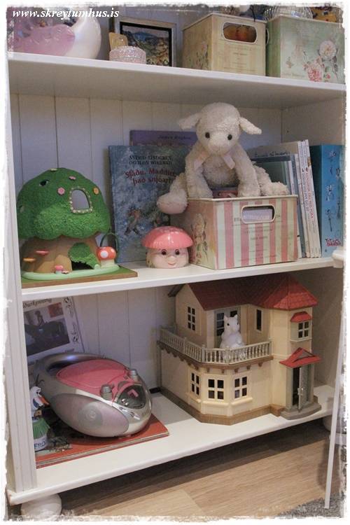 …sömu sögu má segja með hilluna. T.d. er ponykastali ofan á henni – því einhversstaðar þarf að koma þessu fyrir…