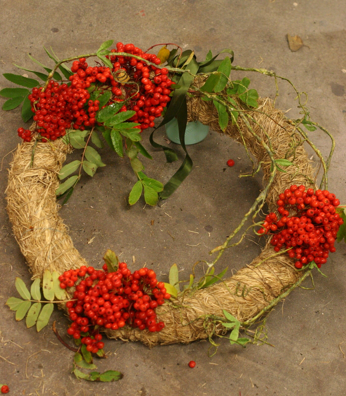 kransinn átti náttúrulega að vera frekar grófur og haustlegur.