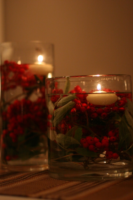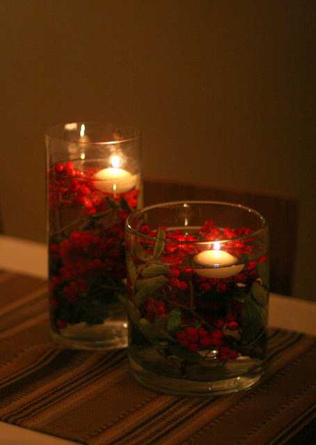 …berin eru úti, en glervasi, vatn og flotkerti ættu að finnast innanhúss