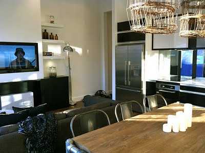 …eldhúsinnréttingin er mér svo sem ekki alveg að skapi, mér finnst hún vera svoldið köld svona glansandi svört og hvít. En þær bæta það upp svo um munar með hlýleika og fallegum húsgögnum og fylgihlutum.