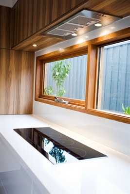 Sniðugt að fela innbyggða viftu í efri skápunum….