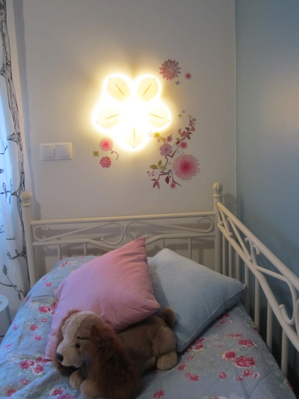 * Sömu blómalímmiðarnir og eru á skrifborðinu, nema að ég sleppti vasanum þarna og læt blómin koma út frá Ikea vegglampanum.