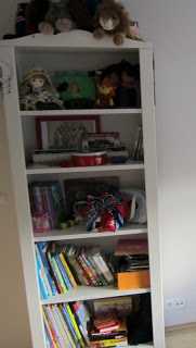 * Rauð taska, aftur er það koma með hlut sem að kemur með hæð í hilluna, ásamt því að stilla upp hlutum sem að til voru fyrir.