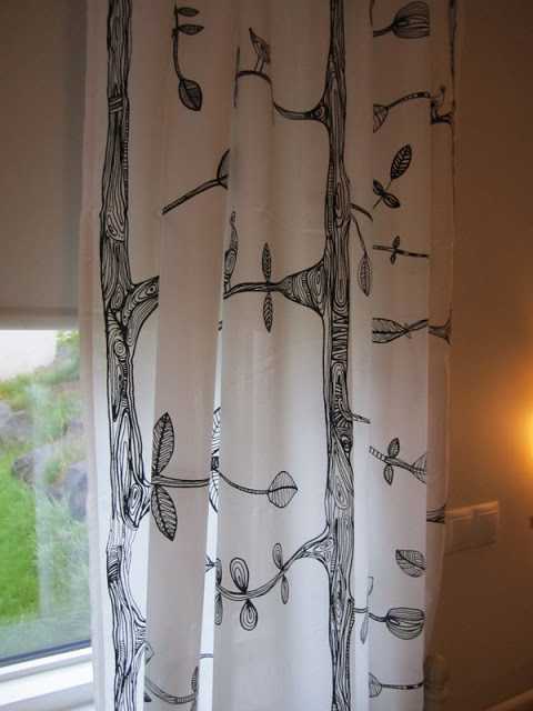 * Geggjaðar gardínur frá Ikea, með trjámynstri og litlum fuglum, alveg yndislegar
