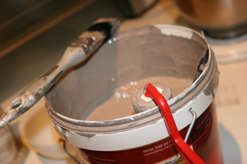 …reif svo fram málingardolluna (liturinn er æðislegur, hann er grábrúnn og er á eldhúsveggnum, skrifstofunni og svefnherberginu – heitir Tiramisu úr Húsasmiðjunni)