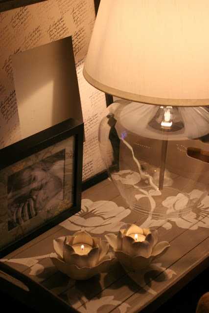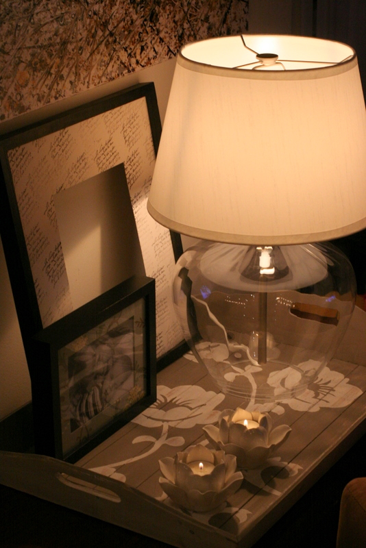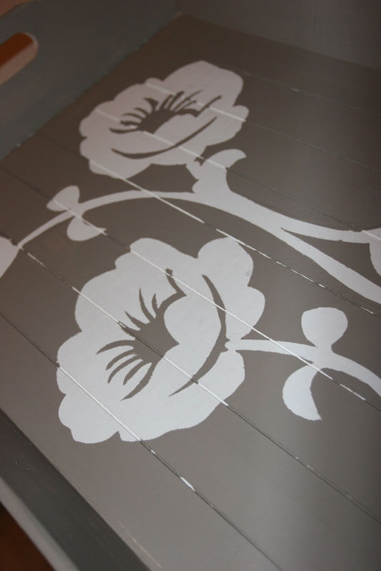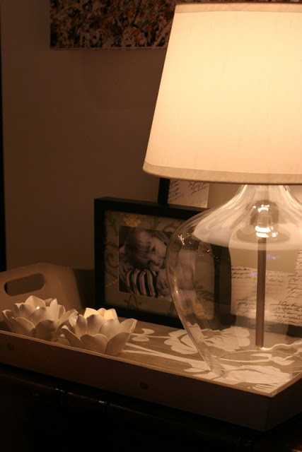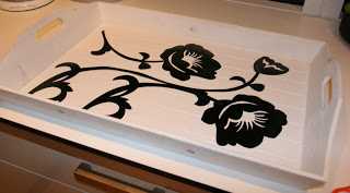 Alveg stórkostlegt hjá þér – er einmitt með einn hvítan bakka hér úr Lifum sem orðinn er ansi sjúskaður og þarfnast smá viðhalds 😉 – spurning um að prófa þetta!! En hvaðan er lampinn, hann er bara gordjöss….