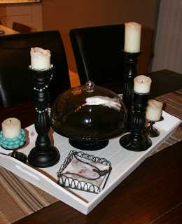 Ég á annan minni hvítann bakka og ég verð að segja eins og er, var sá stóri ekkert að gleðja mig (enda er sagt að stærðin skipti ekki máli 😉 .  En núna er draumalampinn kominn í hús og mig langaði að láta hann standa á bakka og láta bæði bakkann og glerið í lampanum njóta sín.