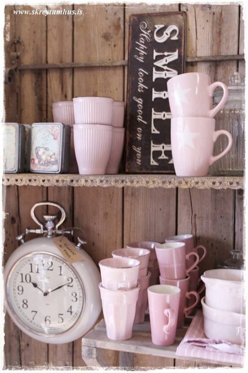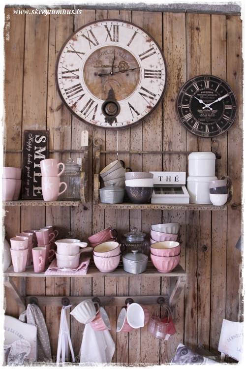 …vegghillurnar, klukkurnar og bara veggurinn sjálfur. Elska að sjá svona grófan vegg með svona bleiku og dúllerí…