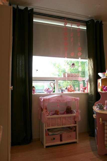 •  Ég ákvað að taka inn dökkar gardínur, þær eru svona dökkmosabrúnar (vantar betri lit til að lýsa þeim 🙂 og eru frá Ikea og heita Merete.