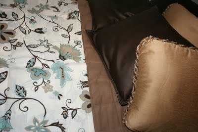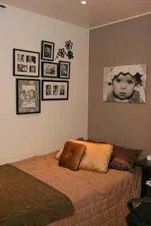 Herbergið er sem sé í brúnum tónum og með smá ljósgrænbláum (teal) inn á milli.