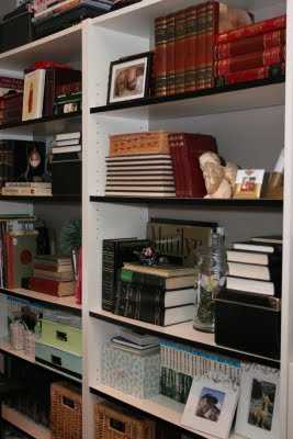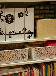 …hér sést síðan hallærismöppuverkefnið inni í hillunni, ásamt perluskúffunum (skrúfuskúffur frá Byko)