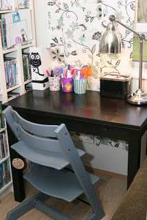 …og eftir að hafa látið hana fá gamla “tölvuborðið” okkar, og fengið aftur gamlan trip trap stól, þá er hún komin með aðstöðu sem að hentar henni mun betur. Plús að það að bæta við gardínustöng og flekagardínum, þá var bara eins og herbergið fengi karakter-uppfærslu!