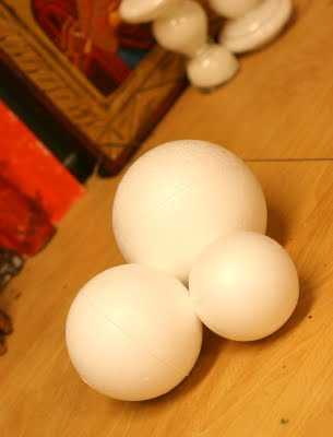 Svo um daginn var ég í föndurbúð og keypti mér þrjár frauðkúlur, í mismunandi stærðum…