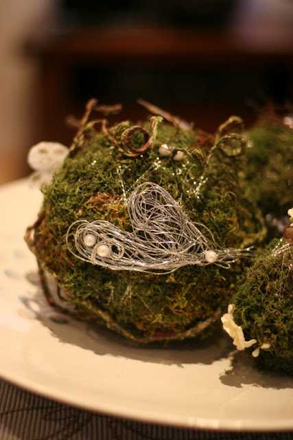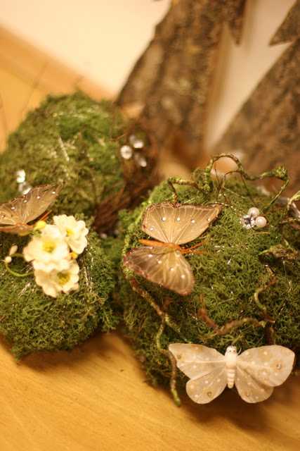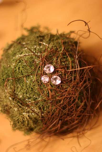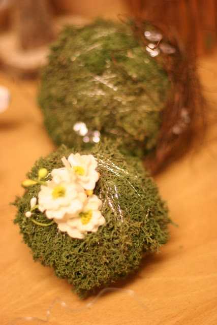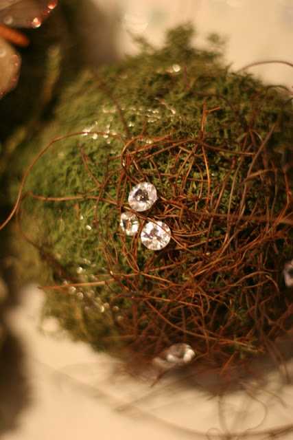 …svo er þetta elementið sem að ég skrifaði um daginn, að vera með grófleikann (í greinunum og mosanum) en fá samt bling-ið inn (demantar) – þetta svona surprice-dæmi, jewels of nature!